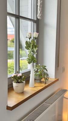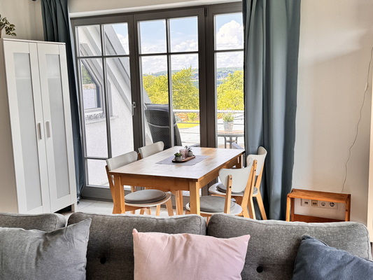 Am Esszimmertisch können bequem bis zu 4 Personen sitzen.